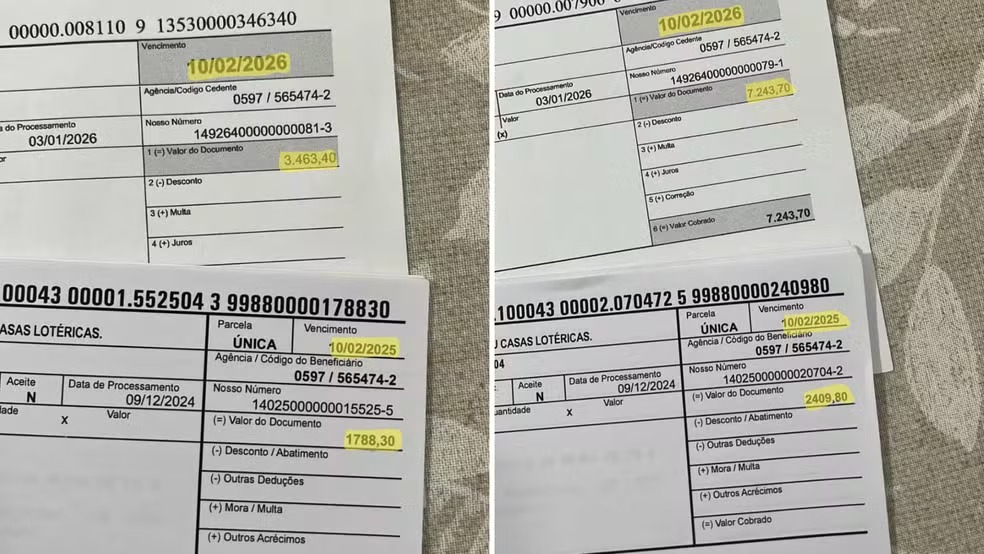 Relatos apontam que uma empresa, que pagou R$ 2.409 em 2025, passou a desembolsar R$ 7.243 em 2026, representando alta de aproximadamente 200%. Outro contribuinte afirmou que o valor saltou de R$ 1.788 para R$ 3.463 no mesmo período, quase o dobro do que foi pago no ano anterior.