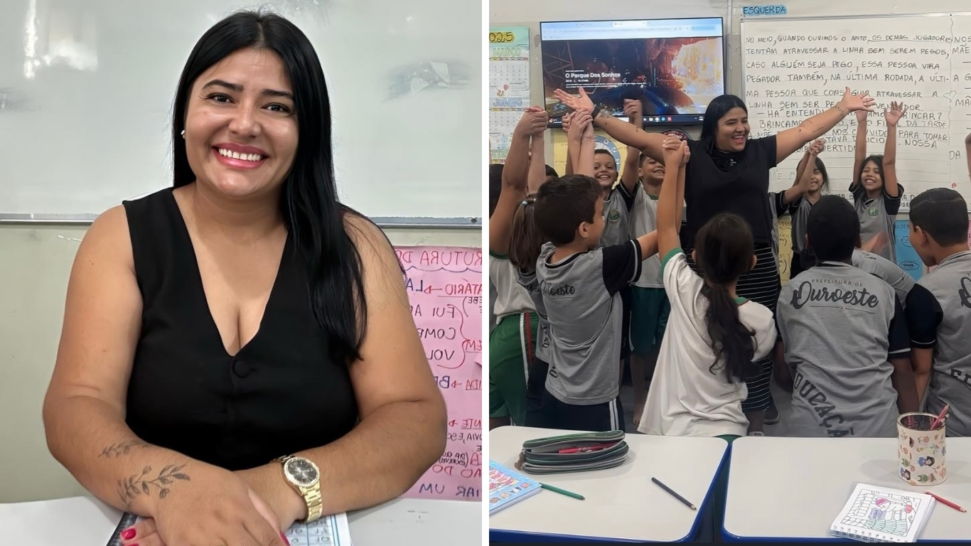 A professora Alexandra Carvalho Pontes, de 39 anos, é daquelas educadoras que iluminam a sala antes mesmo de começar a aula. Há seis anos em Ouroeste, conquistou alunos, pais e colegas com um jeito singular de ensinar, sempre leve, criativo e atento às necessidades das crianças.