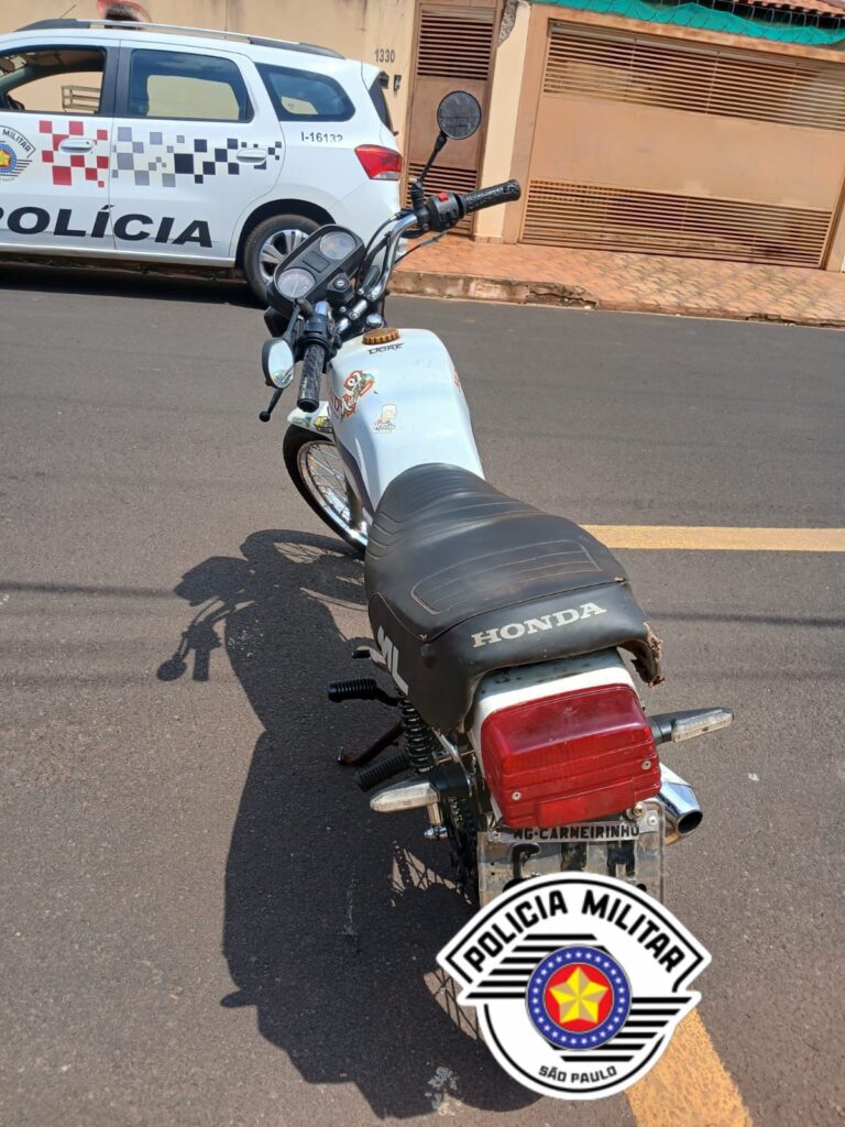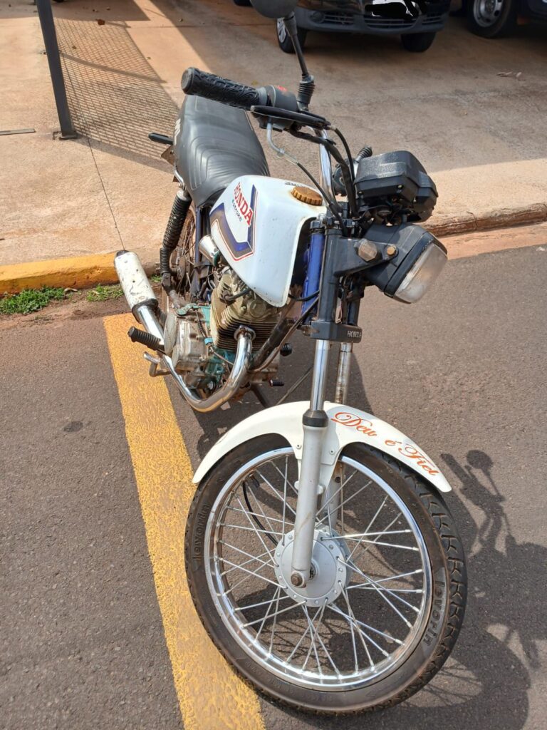 A verificação do veículo revelou que a numeração do motor estava suprimida (“pinada”) e o chassi apresentava sinais de adulteração. Diante dos fatos, o jovem recebeu voz de prisão e, devido ao risco de nova tentativa de fuga e à sua exaltação, foi algemado e conduzido à delegacia.