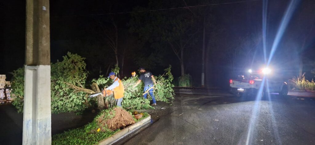 Pela cidade, diversos pontos sofreram com a queda de árvores e galhos, que bloquearam vias e exigiram trabalho imediato da Defesa Civil e equipes de manutenção. Entre os locais afetados estão a Avenida dos Bandeirantes, ruas Domingos Jorge Velho, Nilda Aparecida da Silva Jesus, Antônio Raposo, Fernão Dias Paes Leme e Paschoal Paes de Araújo.